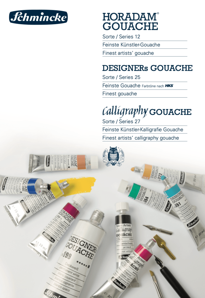 1881 yılında kurulan H. Schmincke & Co., geleneksel reçine‑yağlı “Mussini” formülasyonlarıyla üretime başlamıştır. 1892’de Horadam, adını taşıyan patentli suluboya serilerini geliştirerek patent almıştır. Bu orijinal Mussini yağlı ve Horadam sulu boya serileri bugün hâlâ Schmincke kataloğunun temel taşlarındandır